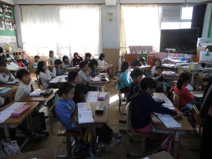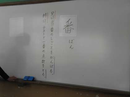 漢字の学習の様子です。新しく習った漢字を使って文作りをしていました。できた文章で,主語や述語はどれかをみんなで考えます。2年生で習う漢字は,今日ですべて学習し終えたそうです。これまで学習してきた漢字を正しく書けるように,何度も練習したいですね。