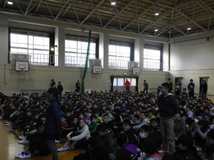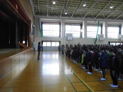 2週間ほどの冬休みが明けて,今日から学校がスタートです。全校が体育館に集まり,はじめの会がありました。校長先生のお話を受けて,気持ち新たに頑張ろうとみんなで確認しました。平成29年度もあと3ヶ月です。みんなで充実した学校生活を過ごせるようにしていきたいですね。