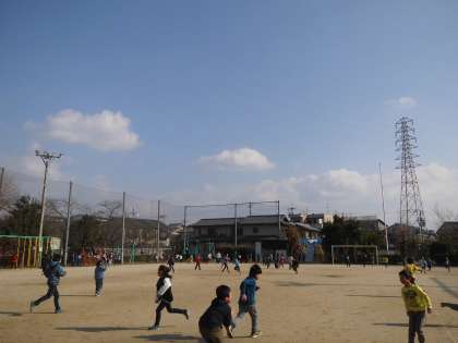 久しぶりに運動場にみんなの元気な声がもどってきました。今日は冷たい風が吹く中でしたが,そんなことはものともせずに元気に遊んでいました。