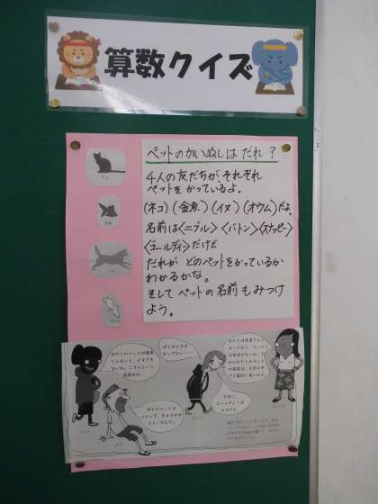 廊下を歩いていると,算数クイズも新しく掲示されています。皆さん気がつきましたか?ぜひ,挑戦してみてくださいね。