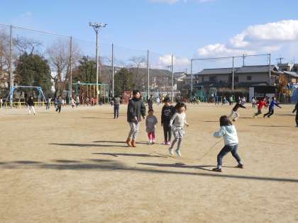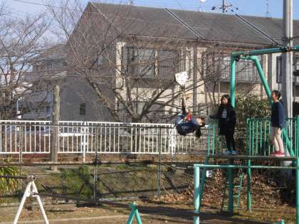 運動場でも元気に遊んでいます。遊具は冷たくなっていますが,しっかり手で握って遊具遊びを楽しんでいました。先生たちも寒さに負けず元気に遊んでいます。