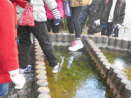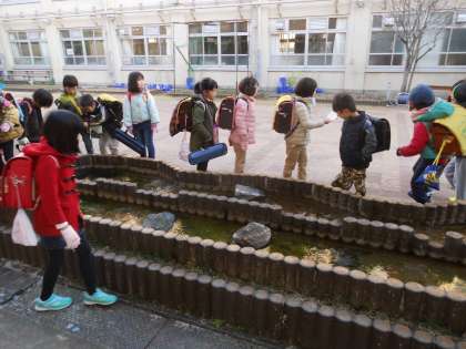 朝登校してきて早速に氷遊びです。今日は昨日より分厚い氷ができていました。手に持ったり,足で割ろうとしたりと,みんなで楽しんでいました。