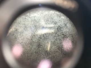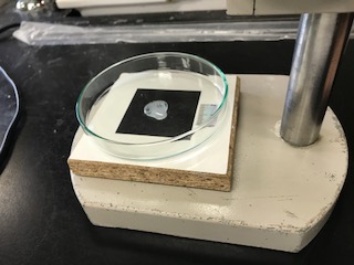 実際にミョウバンの結晶ができはじめる時を顕微鏡で見ました。温められたミョウバンをシャーレの上に落とすとすぐに白く固まり始め、とても美しい結晶ができあがり、「おおー!」という声が上がっていました。