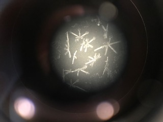 水の結晶は成功率70%ほどらしいのですが、なんとかほとんどの子が成功していました。今まで観察してきた結晶と違い、形が特徴的でした。