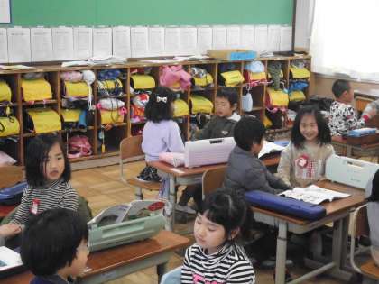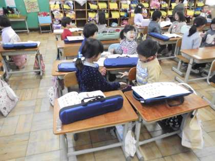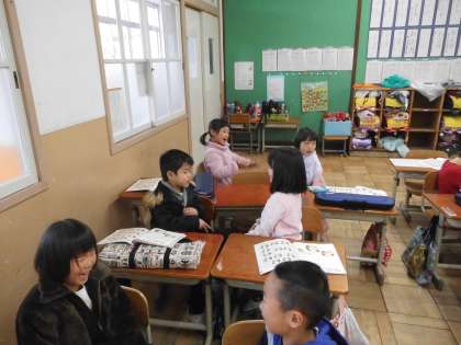 音楽「にほんのうたをたのしもう」の学習で歌遊びをしました。お隣の友だちと一緒に歌遊びを思う存分に楽しんでいました。