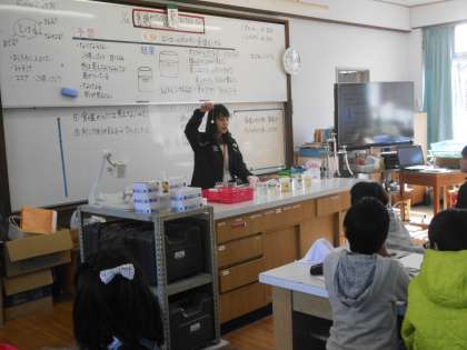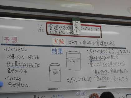 理科「もののとけ方」の学習です。今日は「物が水にとけるというのはどういうことか。」,実験を通して考えました。飴が水の中で溶けていく様子をじっくり観察すると,「とける」ということがよくわかりました。