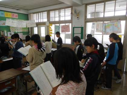 国語「想像力のスイッチを入れよう」の学習の様子です。今日は,音読をしながら,「事例」と「意見」を整理して,話の全体をとらえていきました。