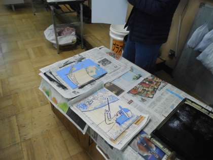 6年生の版画もだいぶ出来上がってきました。ていねいに刷って,いい作品が仕上がっています。作品展でみんなの力作が並ぶのが今から楽しみです。