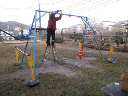 長らくお待たせしました。運動場とちびっこ広場にあるブランコの修繕が完了しました。明日から使用できます。また,ブランコ遊びを楽しんでくださいね。