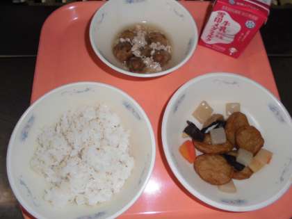 麦ごはん・牛乳・平天の煮つけ・揚げ里いものあんかけ