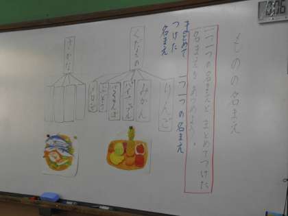 国語の時間は「ものの名まえ」の学習を参観していただきました。お家の方々に見守られる中,張り切って学習する1年生でした。