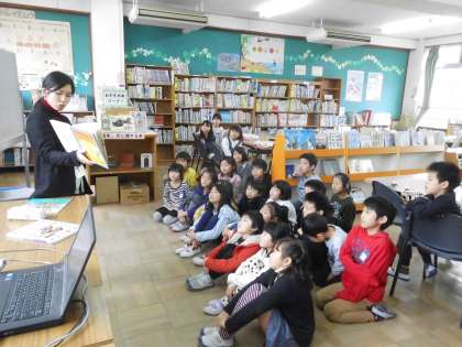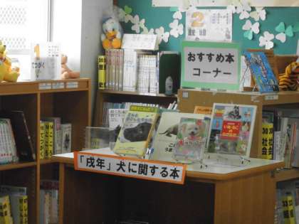 国語は,図書館で読書活動です。先生に絵本の読み聞かせもしてもらいました。おすすめの本のコーナーには,戌年にちなんで「犬」に関する本が紹介されています。また手にとって読んでみたいですね。