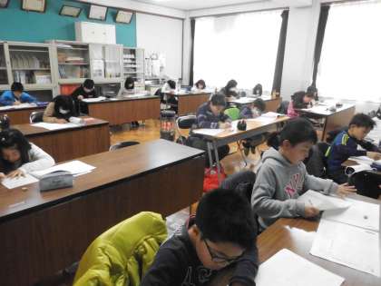 40名が受検しました。冬休みにも学習会で頑張ってきました。家で黙々と頑張ってきた人もいました。これまでしっかり学習してきて,自信をもって取り組めた人も多いようです。結果は約1カ月後に届く予定です。