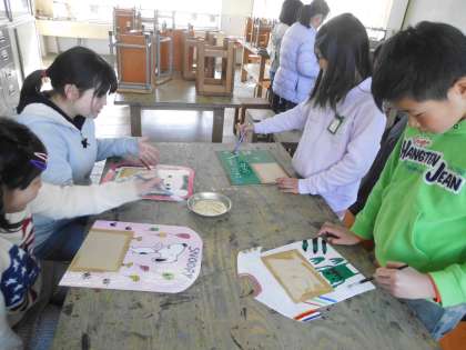 図工で作っていた伝言板が完成してきました。電動のこぎりで苦労しながら切っていましたが,なかなかの力作ぞろいです。絵の具で色を塗り,ニスを塗っている人も出てきました。作品展で飾られますので,またご鑑賞ください。