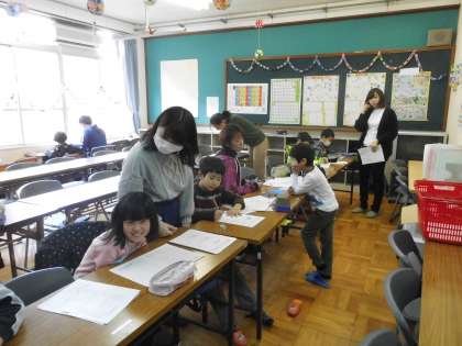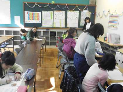 今日は2月の土曜学習でした。学習活動では,2月17日(土)の算数検定に向けての学習会を兼ねて行いました。先生や地域の方々に見守られて,みんな集中して学習に取り組むことができました。