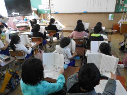 国語の時間,元気な音読の声が教室から聞こえてきます。いい姿勢で,口をしっかり開けて,音読する姿がありました。お家での音読も,日々頑張っていることだと思います。これからもいい声で音読ができるように,頑張ってほしいです。