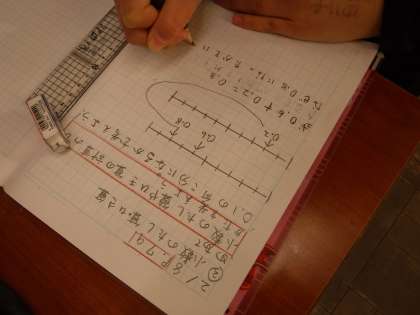 算数科では,小数の加減の学習に入りました。これまで小数の量感を,1Lの10個に分けたいくつ分,1cmの10個に分けたいくつ分、と言ったように,分数に置き換えたりしながら学習して来ました。今日は初めて小数と小数を足したり引いたりする学習でした。0.1がいくつ分か,で考えて計算をしました。線分図で考えたり,テープ図で考えたり,友だちの考え方を聞きながら理解を深めています。
