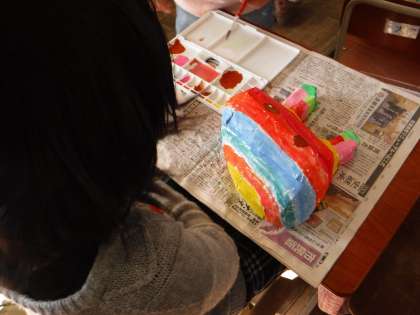 図画工作科の「お面づくり」では,最後の仕上げを終える子が出てきました。自分なりの色や柄を決め,絵の具で彩色をしています。細かな模様を描く子からダイナミックに色を塗る子まで様々ですが,その子その子の個性を大切に制作しています。