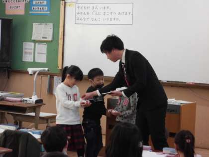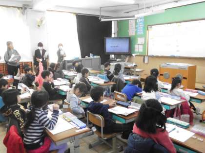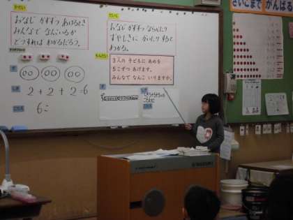 1年生は,算数「おなじ かずずつ」の学習です。たくさんの他校の先生方に見守られる中,一生懸命考え発表し,学習を進めていきました。