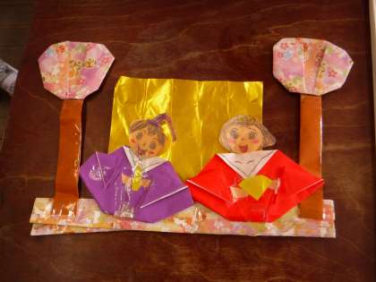 と,ある子が雛祭りのかざりをくれました。なかなか力の入った仕上がりです。早速教室の壁面に掲示しておきました。