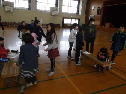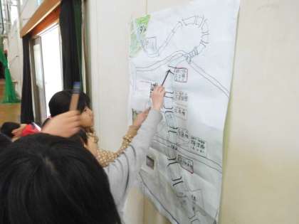 5・6年生の環境委員のメンバーが,環境クイズラリーを開催です。学校のすぐ横を流れる有栖川にちなんだ問題や,環境にまつわるクイズなどが出題され,ヒントを頼りにして考えていきます。身近な環境について考えるよい機会となりました。