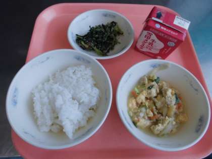 ごはん・牛乳・あげたま煮・だいこん葉のごまいため
