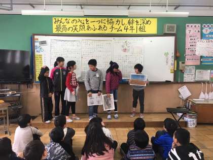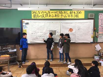総合的な学習の時間の様子です。エコライフチャレンジの学習から、更に自分たちで調べたいテーマについて、調べたことを分かりやすくまとめました。各グループポスターセッションを行い、地球温暖化を防ぐための取組を呼びかけていました。