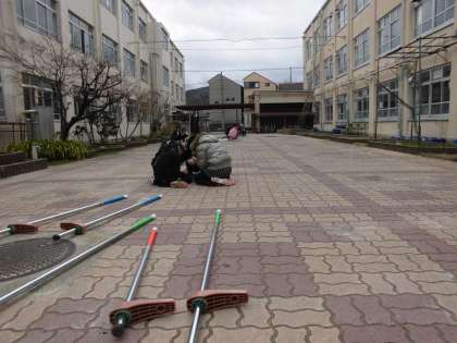 今回の訓練は,中間休みに地震が起きた想定で行いました。これまでは,先生の指示のもとで避難体制をとっていましたが,休み時間なので,各自でどのような行動すべきか考え実行していきます。それぞれの場所で,適切な行動はとれたでしょうか。また,お家の人とも一緒に考えてほしいです。