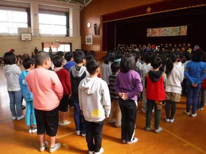 今日は,いよいよ今年度最後の全校行事となった,6年生を送る会がありました。全校児童に見守られ,次々と入場して来る6年生の姿は,とても大きく見えました。3年生の子どもたちも,こうして小学校を巣立っていく日が来るのかと,その背中を見ていたように思います。3年生は,6年生へのお別れの呼び掛けと,「いのちのうた」という曲をみんなで発表しました。6年生の心に残るような,気持ちのこもった歌が歌えたのではないかと思います。