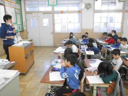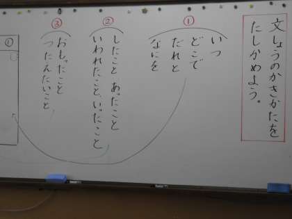 国語の学習の様子です。段落を意識して,文章を書きました。ひらがなの学習からスタートして,この一年,しっかり書けるようになりました。