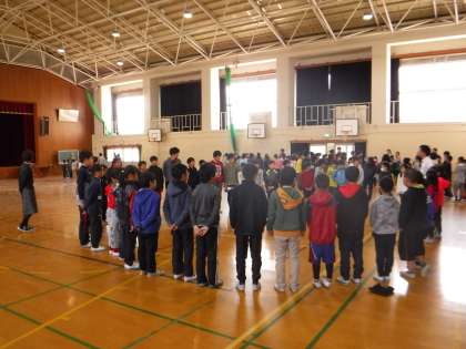 中間休みには今年度の部活動閉講式がありました。3年生もさまざまな部活動に,たくさんの子が参加しており,異年齢集団の中で,切磋琢磨したり競技に打ち込んだりしています。1年間の活動の中で,メンバー同士絆が育まれているようにも感じます。もうすぐ6年生が卒業です。部活動の先輩にも,励ましのエールを送って欲しいと思います。