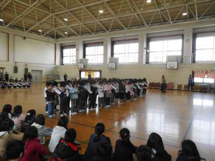 各学年から歌や言葉を6年生に向けて発表です。どれも心に響く発表でした。発表を聞く6年生の表情も,とてもあたたかいまなざしでした。