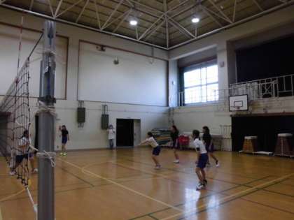 部活動バレーボール部のお別れ試合の様子です。結果は教職員チームの勝利。でも接戦のいい勝負でした。