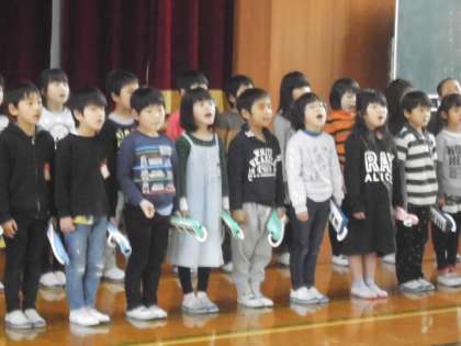 1年生は4月の入学式に向けて練習です。新しい1年生をにこやかに迎えられるように,張り切って練習しています。梅津北小学校に新しい仲間がやってくるのですね。