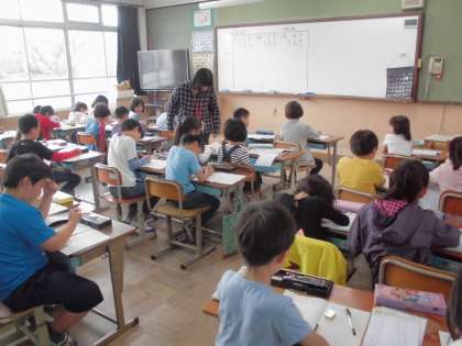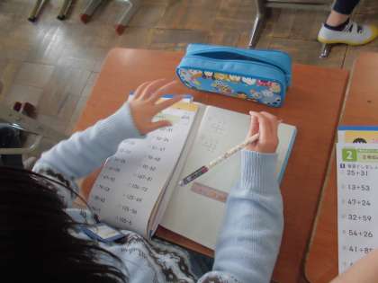 3年生は2年生の計算(筆算)の復習を行いました。「縦に位をそろえて書く」「一の位から計算する」などを確かめました。計算の仕方を筋道立てて発表できました。