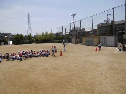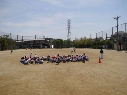 青空のもと,運動場で50m走のタイムを計りました。タイムが少しでも速くなるよう頑張って走っていました。