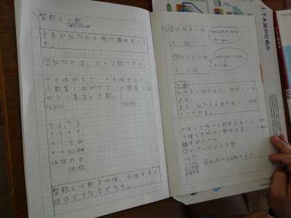整数と小数の位について学習しました。5年生にもなると,自分なりにわかりやすくまとめることができる子どもたちがたくさん増えています。学習の途中で考えたり,振り返ったりするために,自分なりのわかりやすいノート作りを頑張ってほしいと思います。