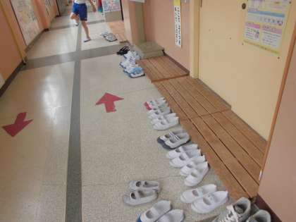 今日は3年生の身体計測の日。身長と体重の測定がありました。伸びが楽しみです。履物は廊下にきちんと並べることができました。