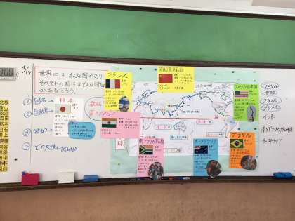 世界に目を向けて,どんな国があり,それぞれどのような特徴があるのかを資料を見ながら,調べてノートにまとめていきました。授業をきっかけに,普段からも様々な国について調べていってほしいと思います。