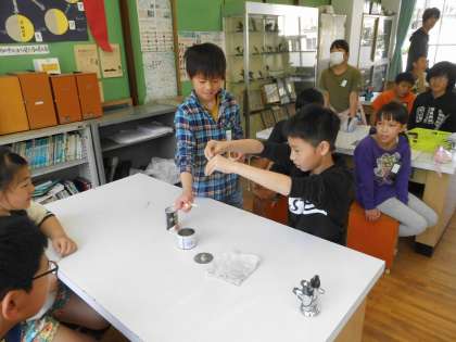 「ものの燃え方」の学習で,実験を行いました。木に火をつけて,ふたをしたらどうなるかを見て,火が消えるのはなぜかを考えました。これからの学習で,その理由を見つけていくために,実験をしながら学習を進めていきます。