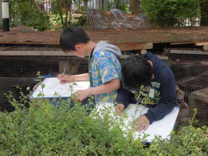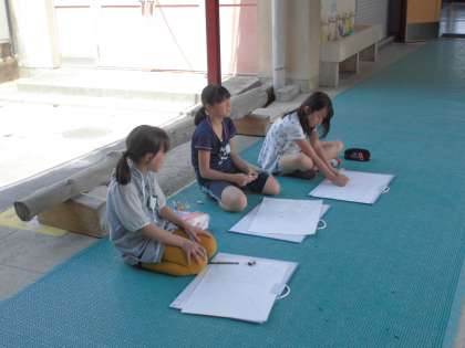 6年生は,図画工作「私の大切な風景」で,遠近法の構図,着色の濃淡に気をつけながら制作しているところです。