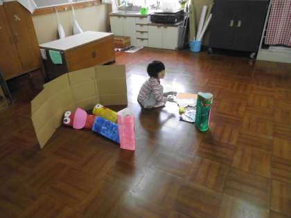 ピンとなる怪獣の作成を進めています。少し金色の紙を使って,模様をつけました。いろんな表情のモンスターを作ることができています。