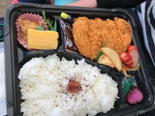 名古屋港水族館でいただいています。名古屋名物味噌カツ弁当です。