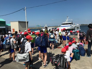 師崎港に到着しました。すばらしい景色です。着替えも終わり、これから高速船に乗って、日間賀島に向かいます。