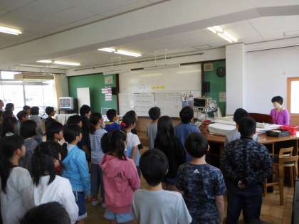 学年で,十川先生に声の出し方を教わり,確認しながら「Believe」を歌いました。頭の上から声を出すことを意識して,とっても美しい歌声になってきました。