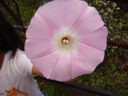 ちびっ子広場で見つけた花がアサガオだとは知らず,聞いてくる1年生でした。