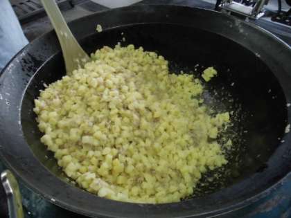 『ハッシュドビーフ』は、玉ねぎの3分の1をきつね色になるまで炒め、牛肉・ホールトマト・人参・残りの玉ねぎを加えてさらに炒め、水を加えて煮、別の釜でバター・小麦粉をじゅうぶんに炒めて手作りしたルーを入れて、弱火で煮込み、バーベキューソース・ウスターソース・塩・こしょう・醤油で調味し、よく煮込んで仕上げました。
