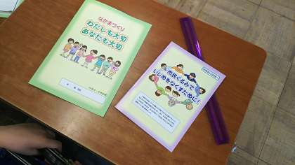 保護者の方へも「いじめをなくすために」の冊子を持ち帰っております。目を通していただき,お家の方でもいじめについてお話しいただけたらと思います。よろしくお願いいたします。