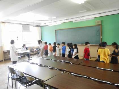 今年度初めての眼科検診を行いました。しっかりと静かに並んで待って,検診を受けることができていました。検診の結果で,病院に行って診てもらった方がよい場合は,用紙を子どもたちが持ち帰りますので,早めの受診をお願いします。