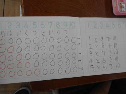 算数科で,10がいくつといくつになるかを考えました。ノートにしっかりと書けるようにもなってきました。